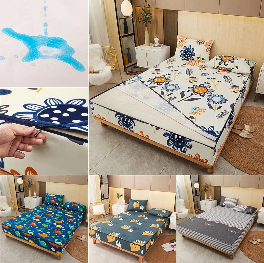 New Six Sided With Zipper Mattress Protector Bed Sheet Full Waterproof Dust Cover Queen King Twin Full Customizable Bed Cover Mattress Cover Grippers Aliexpress
